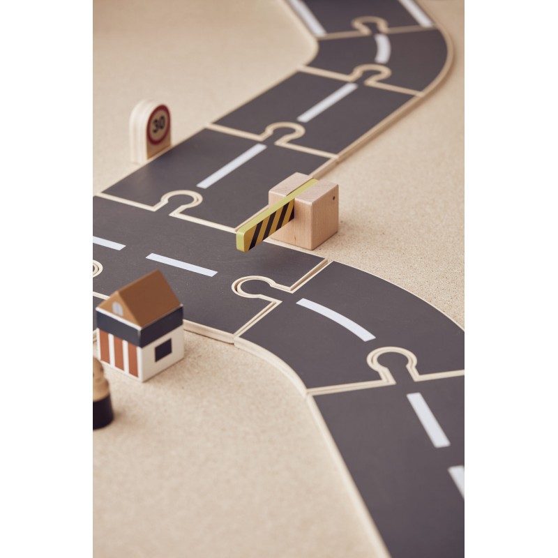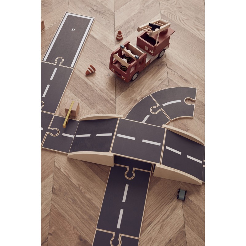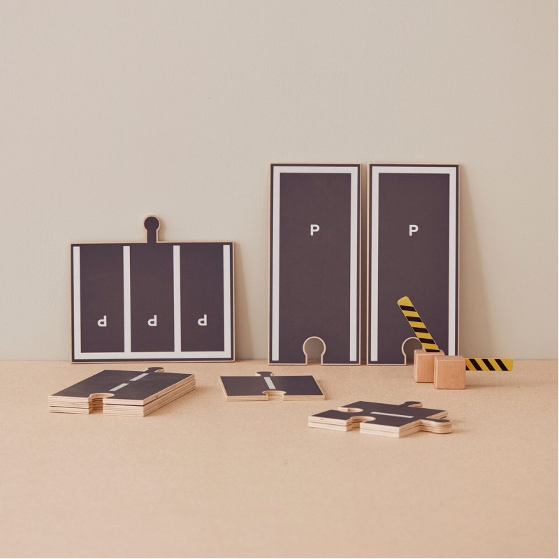 Komplektā ietilpst vienpadsmit koka detaļas, tostarp trīs stāvvietas, ceļa barjera, seši ceļa posmi un divas īpaši garas stāvvietas kravas automašīnai, ugunsdzēsēju mašīnai un / vai autobusam. Paplašiniet Aiden City un atbrīvojiet vietu visiem Aiden sērijas transportlīdzekļiem. Der visām Kids Concept automašīnām un autobusiem