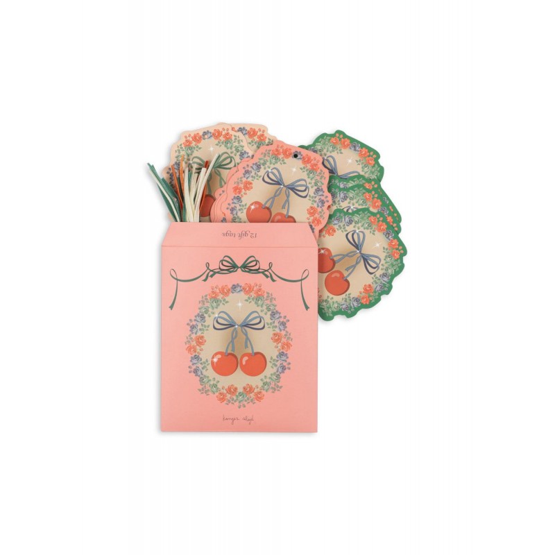 Dekoratīvas dāvanu birkas ar roku zīmētām ilustrācijām. Katrā iepakojumā ir 12 gabali.