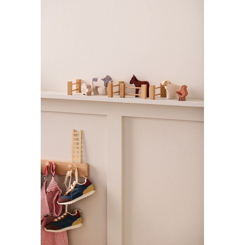 Iepazīstieties ar stilīgākajiem lauksaimniecības dzīvniekiem! Vista Hilma, pūkainā aita Wera, cūka Babs, govs Cia un zirgs Tors. Viņi visi dzīvo kopā lauku mājā, gatavi ienest siltumu un prieku jūsu rotaļu laikā. Izmantojot komplektā iekļautos četrus koka žogus, jūs varat izveidot savu mājīgu norobežojumu tieši lauku mājas pagalmā, ļaujot nebeidzamiem piedzīvojumiem un izdomas bagātai lauku dzīves spēlei.