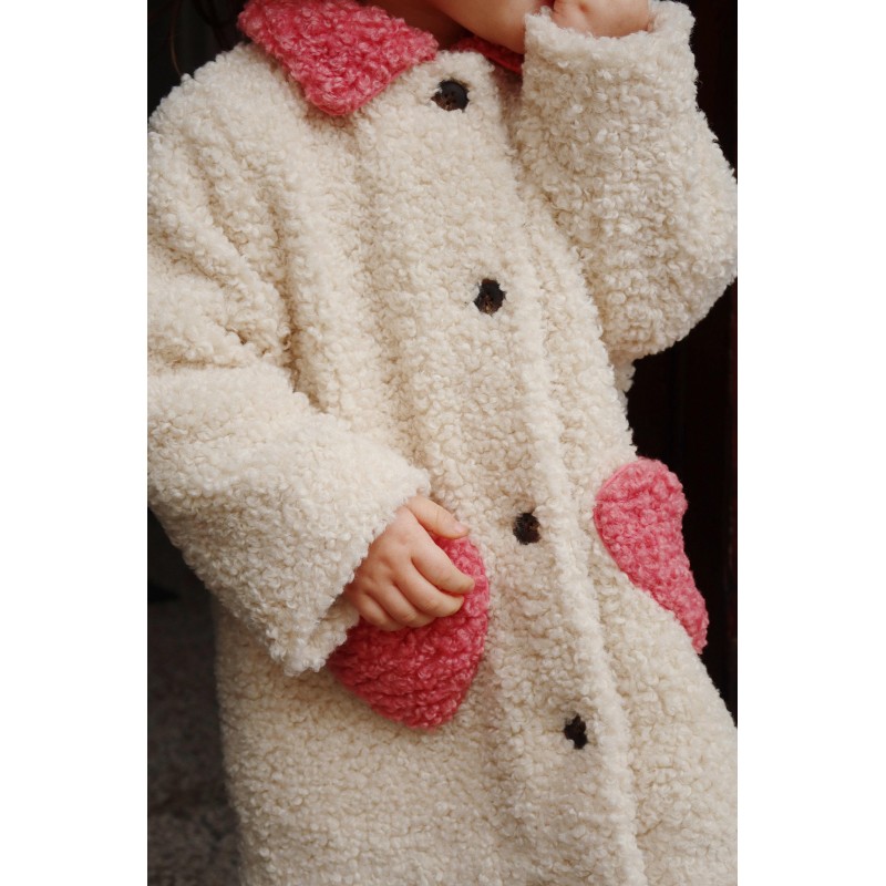 Mīksts un silts klasiska silueta mētelis ar noapaļotu apkakli, priekšējām kabatām un pogu aizdari.