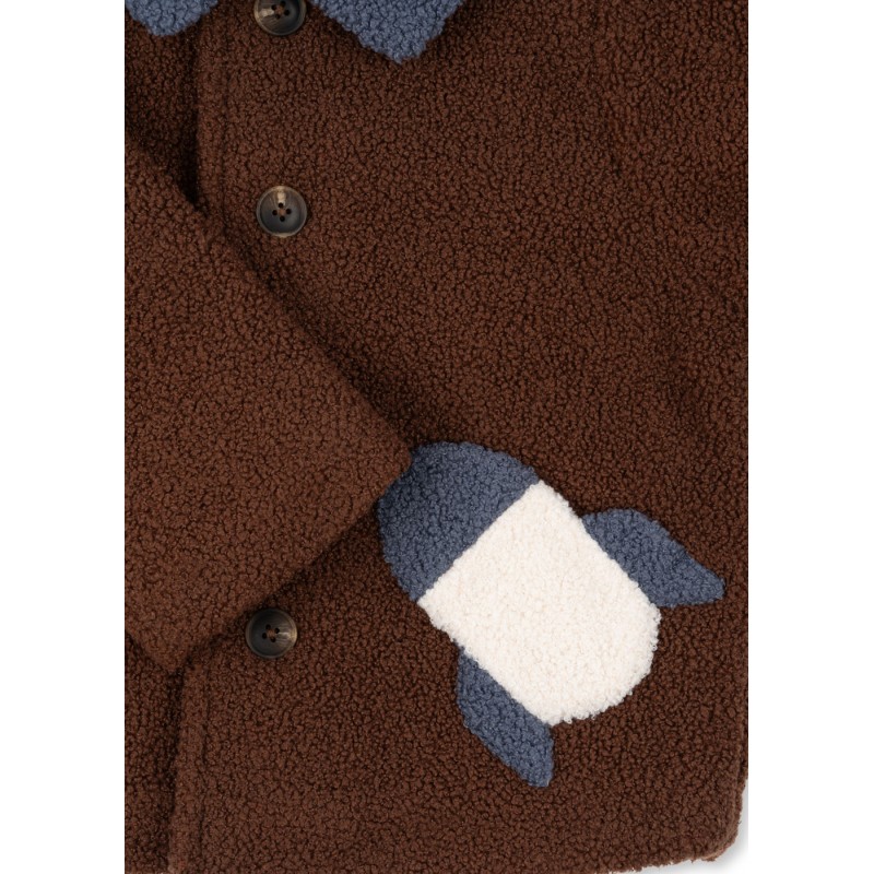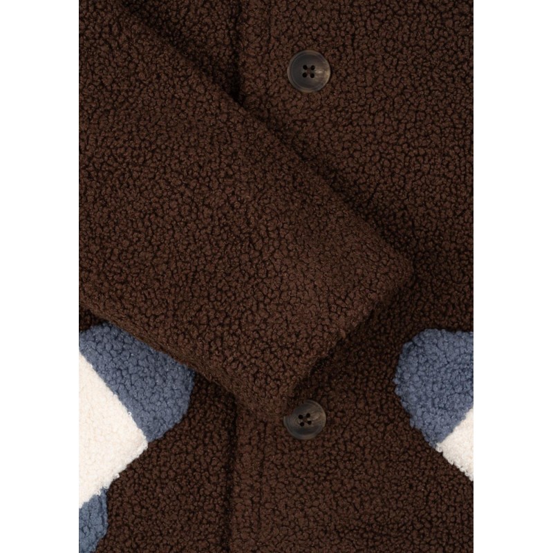 Klasisks mētelis ar pūkainu, mīkstu virsmu, noapaļotu apkakli, raķetes formas kabatām un taisnu siluetu.