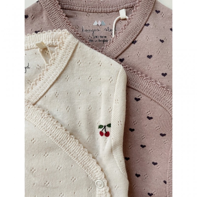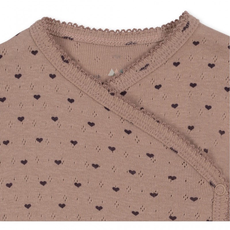 Mīksts pointelle audums, kas izgatavots no 100% organiskās kokvilnas. Izstrādāts ar spiedpogām pie pleca un kājstarpes/kājām ērtākai ģērbšanai.