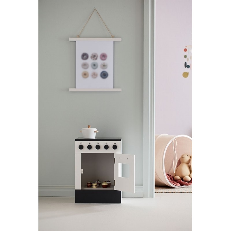 Klasiska stila rotaļu plīts, izgatavota no 12 mm FSC sertificēta MDF stabilai konstrukcijai. Cepeškrāsns durvis var atvērt un visas pogas var pagriezt, un tām ir arī klikšķa skaņas. Komplektā viena cepešpanna.