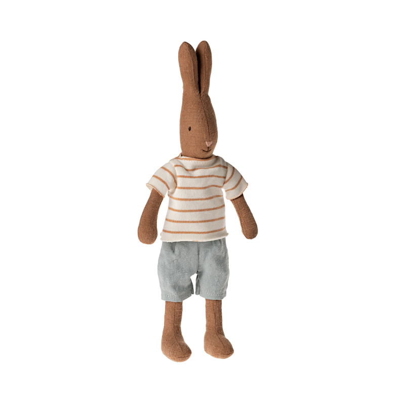 Klasisks trusis, kas izgatavots no mīkstiem, dabīgiem audumiem, kas piešķir patīkamu sajūtu turot to rokās. 1. izmēra trusis iederas miniatūrajā mājā un atbilst visām mēbelēm izmērā: mini un miniatūrs. Apskati apģērbu kolekciju, lai paplašinātu trušu garderobi.