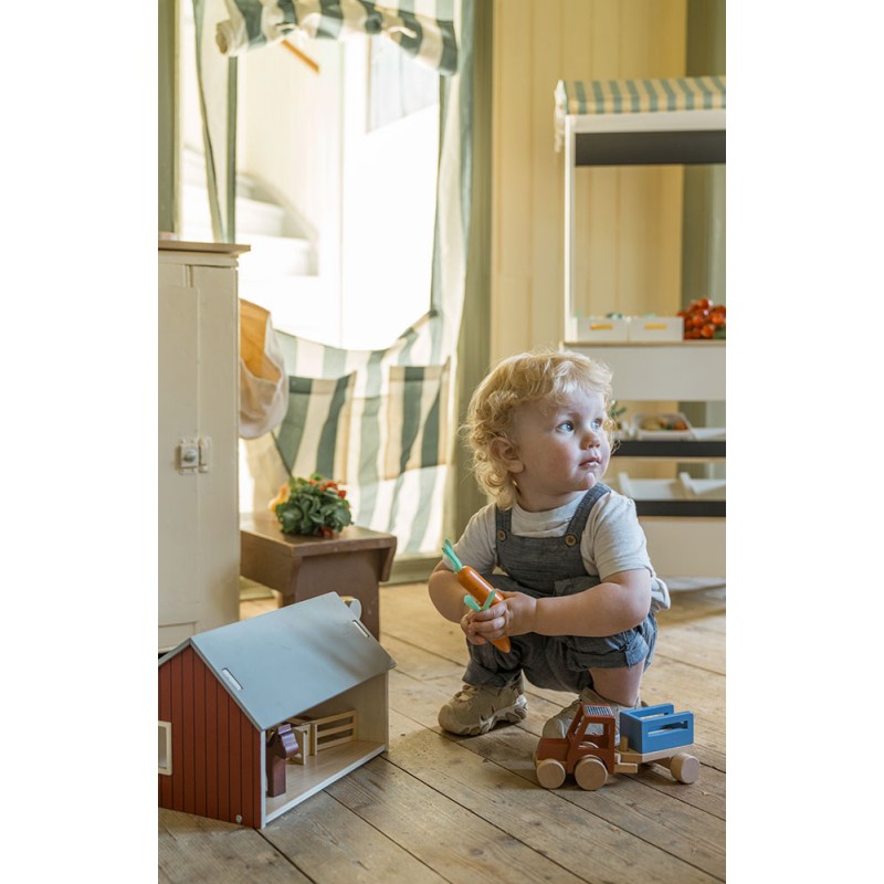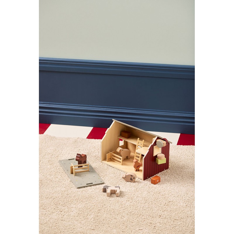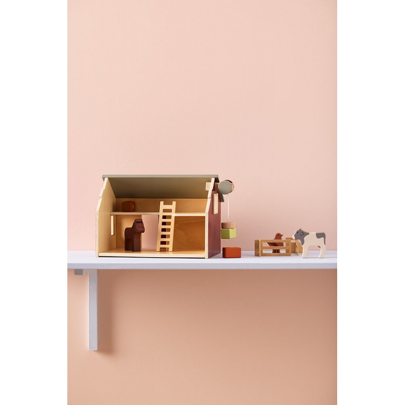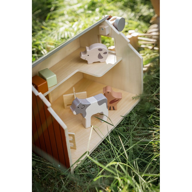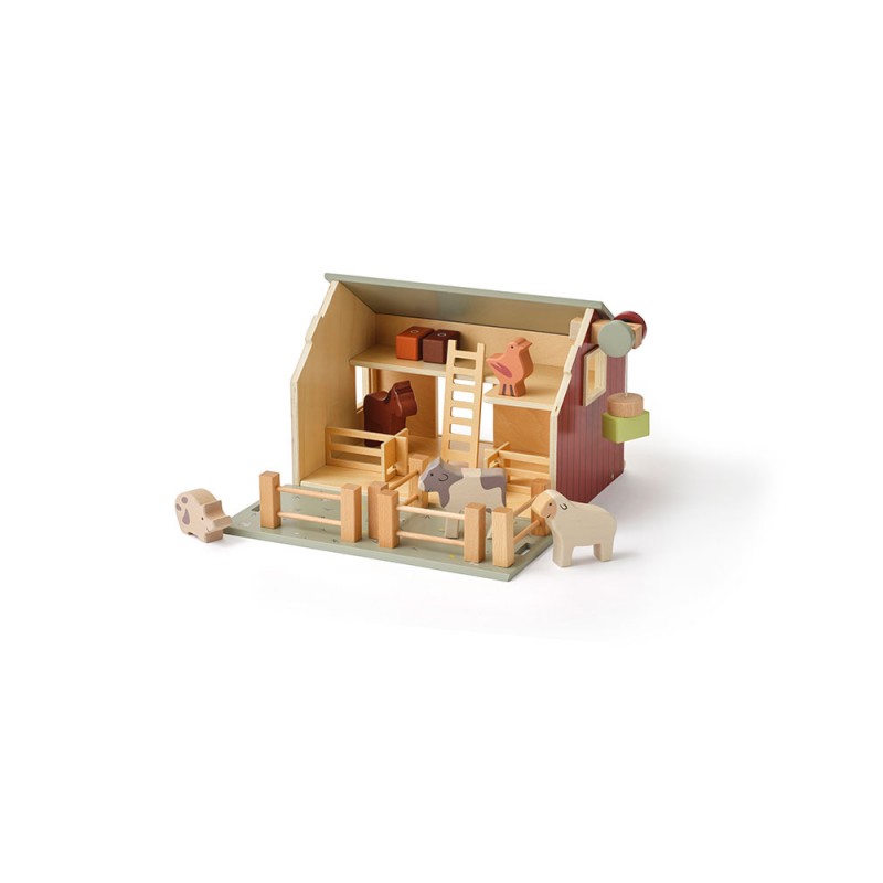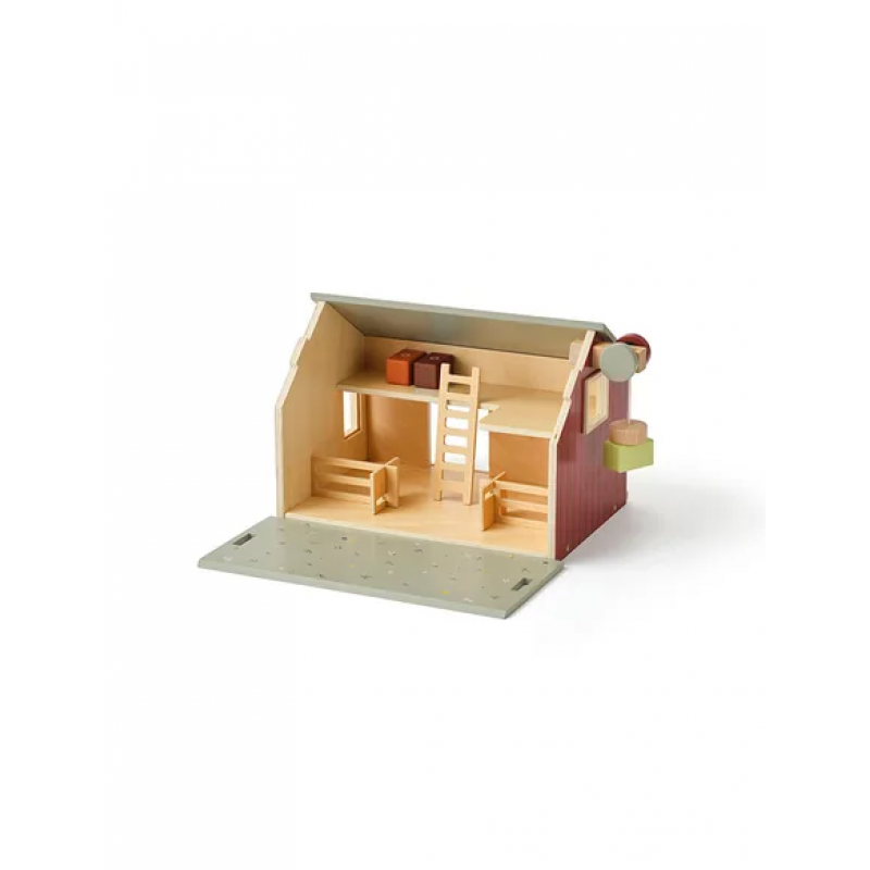 Sāciet jautru lauksaimniecības piedzīvojumu ar šo koka fermu. Mājai ir bīdāmās durvis, divi līmeņi, divi logi, uz jumta ir izlikti saules paneļi. Noņemama priekšējā jumta augšdaļa, no kuras redzama jauka ziedu pļava, kurā dzīvnieki var spēlēties. Iekšpusē ir darba vinča ar magnētu, lai pa logu paceltu siena ķīpas. Komplektā ietilpst arī kāpnes un divi iekštelpu žogi daudzām lauku spēlēm. Pēc spēlēšanās siena ķīpas var nolikt augšējā stāvā. Šī lauku māja ir jauka rotaļlieta jebkuram rotaļu laukumam, piedāvājot daudzas stundas radošas lauku rotaļas.
