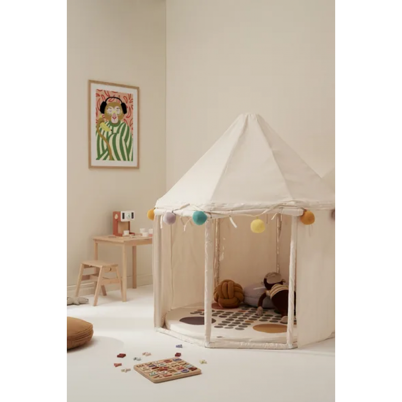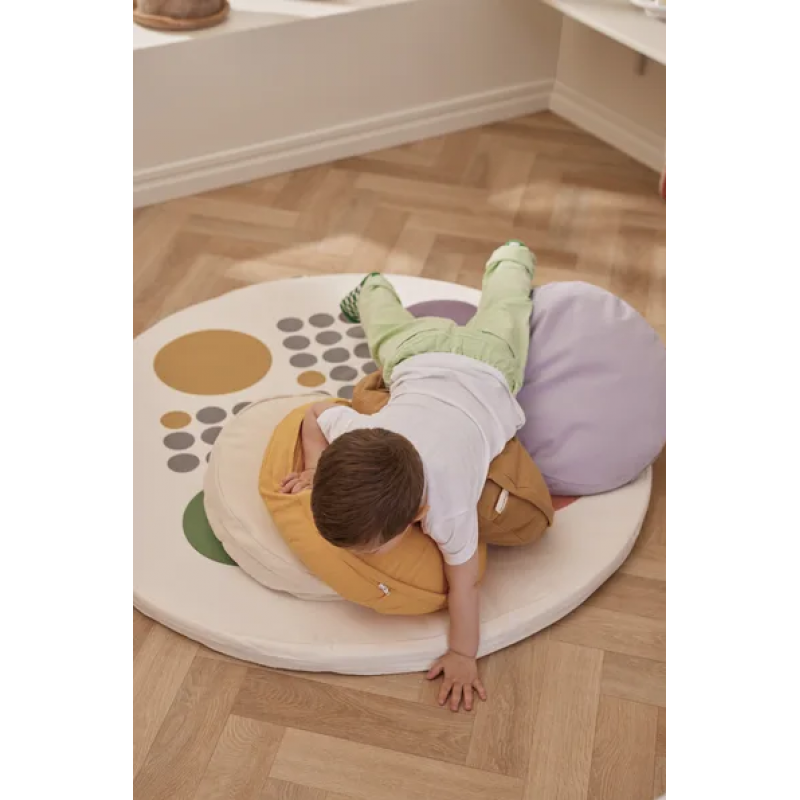 Apgriežams grīdas spilvens no izturīga kokvilnas audekla. Lieliski piemērots lietošanai kā rotaļu paklājiņš vai otrādi apgriezts - riču raču spēlei. Viena puse ir vienkārša, bet otrā ir iespiesta riču raču spēle. Grīdas spilvenam ir līdzīgs audums kā Kids Concept kokvilnas teltīm, un tas lieliski sader ar paviljonu teltīm. Vai izmantojiet lielo spilvenu kā “omulīga stūra” sastāvdaļu jebkurā telpā. Iekšējais spilvens ir sadalīts četrās daļās, tāpēc to ir viegli salocīt un uzglabāt, kad tas netiek lietots. Noņemams un mazgājams pārvalks.